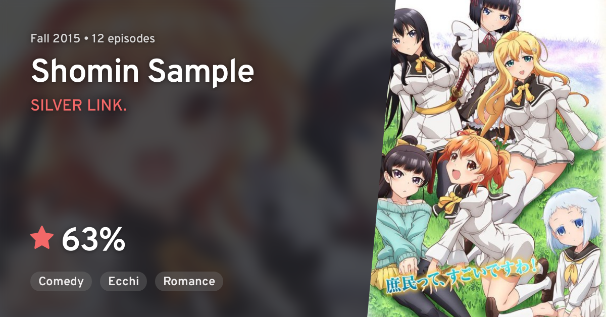Shomin Sample TV Series 2015 cast and crew credits including actors actresses directors writers and more. Press shift question mark to access a list of keyboard shortcuts. Shomin Sample is one of the funniest ecchi harem animes Ive ever had the pleasure to watch.